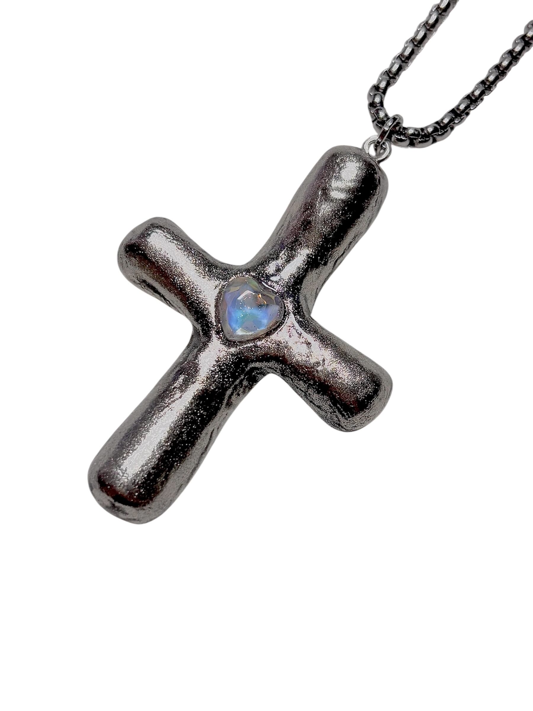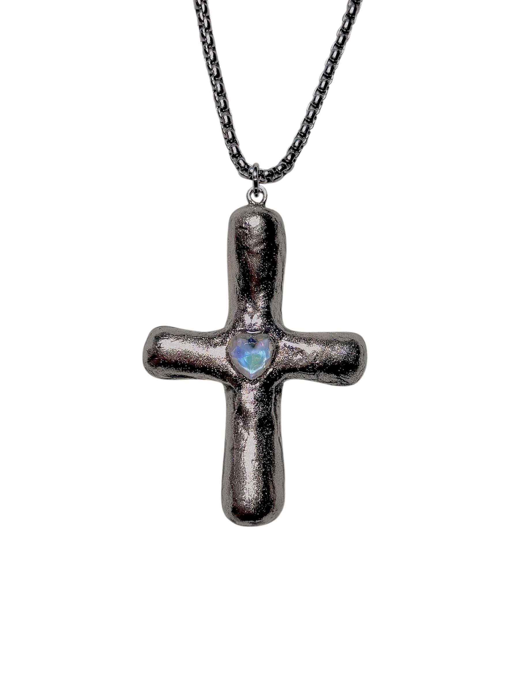 クレイで作ったクロスモチーフのペンダントです๋ ׅ ˖